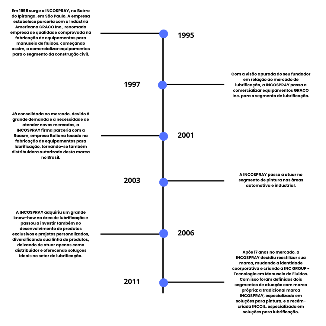 Em 2011 a empresa decidiu reestilizar sua marca, mudando a identidade corporativa com a criação da IncGroup – Tecnologia no Manuseio de Fluidos. Com isso foram definidos os dois segmentos de atuação com marca própria: a tradicional marca INCOSPRAY, para soluções em pintura e a recém-criada INCOIL, voltada para soluções em lubrificação.